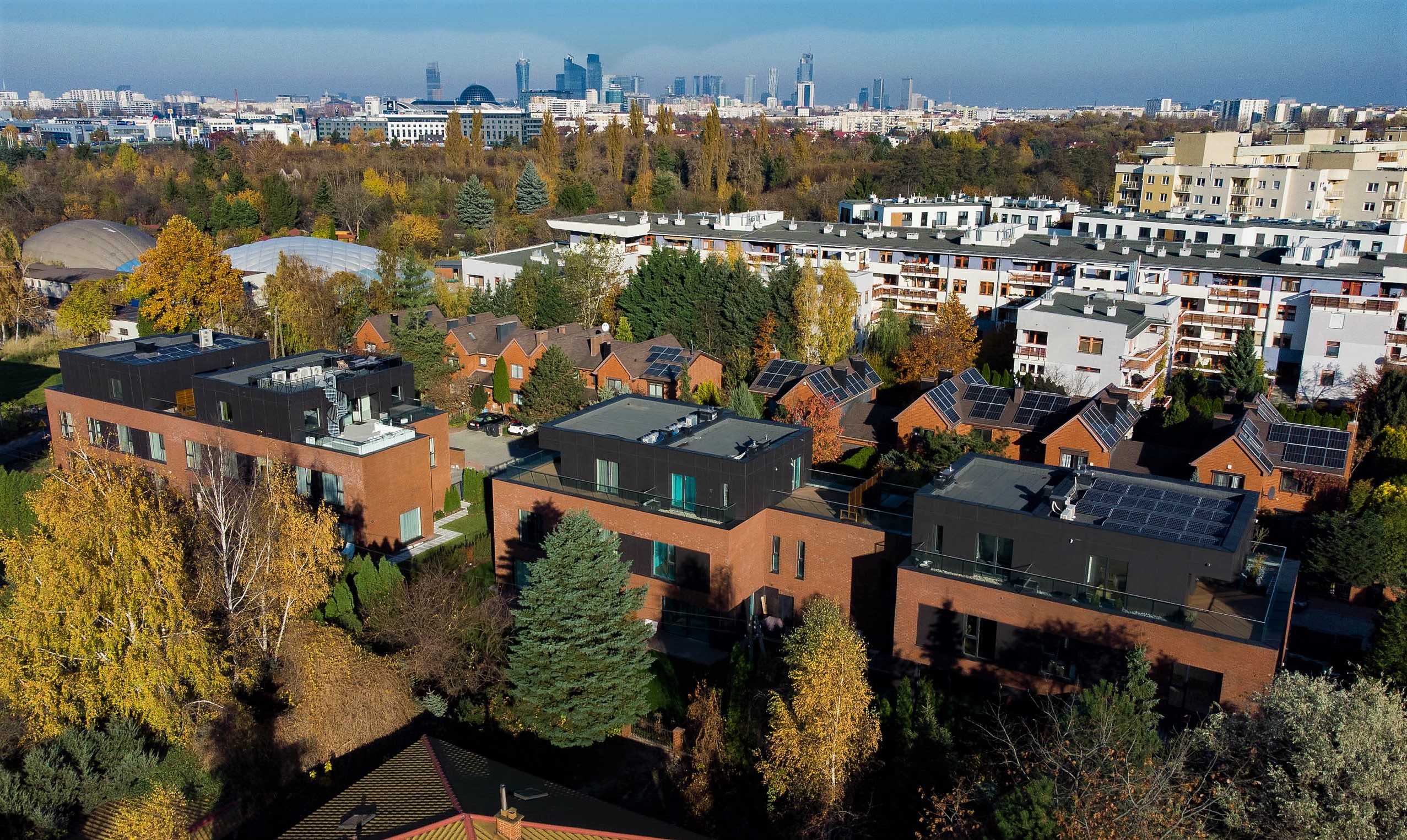- Urządzona zieleń oraz zagospodarowanie tarasów na ostatniej kondygnacji budynków, z doskonałym widokiem na Warszawę.